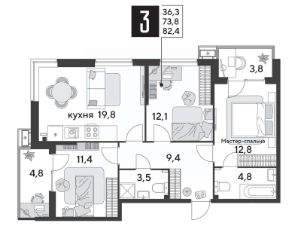 Срок сдачи: 1 кв. 2026, общей площадью 82.6 кв.м., на 2 этаже.
