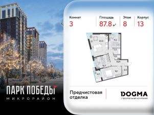 Срок сдачи: 1 кв. 2026, общей площадью 87.8 кв.м., на 8 этаже.