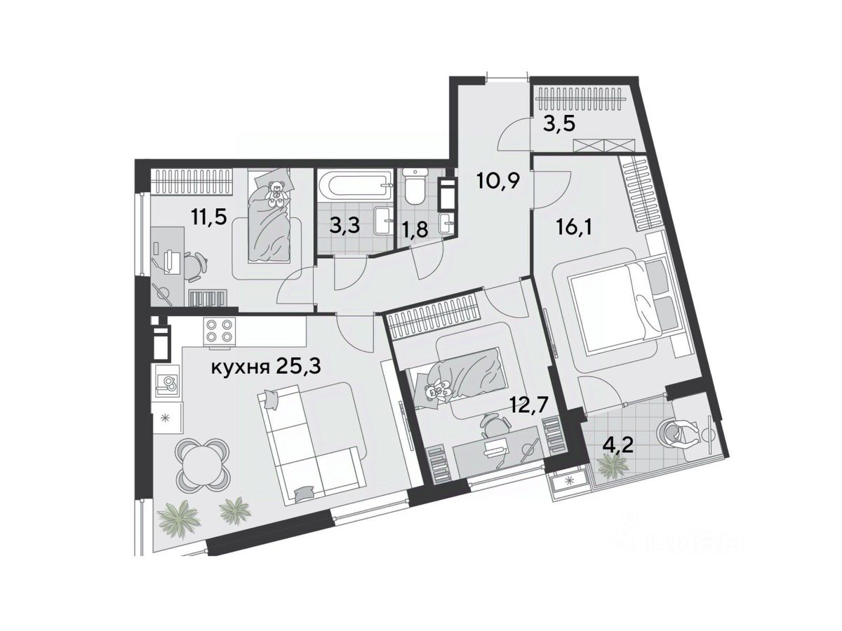 Срок сдачи: 1 кв. 2026, общей площадью 88.3 кв.м., на 10 этаже.