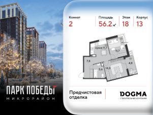 Срок сдачи: 1 кв. 2026, общей площадью 56.2 кв.м., на 18 этаже.