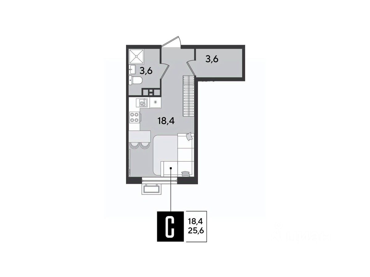 Срок сдачи: 2 кв. 2026, общей площадью 25.6 кв.м., на 3 этаже.