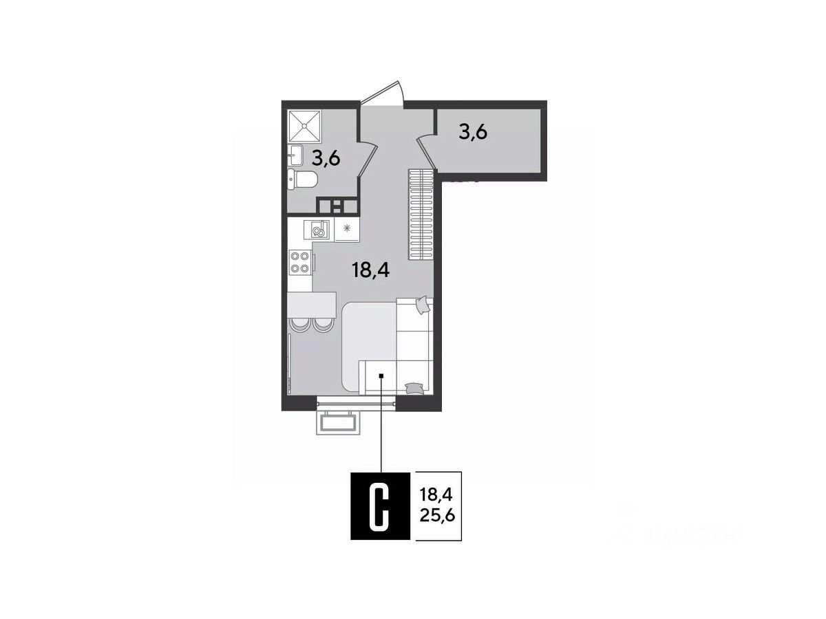 Срок сдачи: 2 кв. 2026, общей площадью 25.6 кв.м., на 5 этаже.