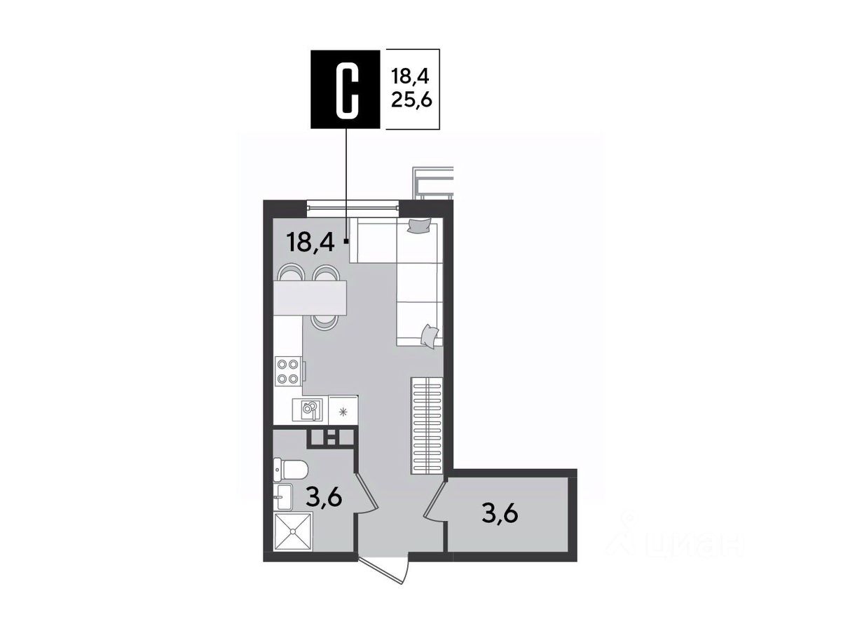 Срок сдачи: 2 кв. 2026, общей площадью 25.6 кв.м., на 4 этаже.