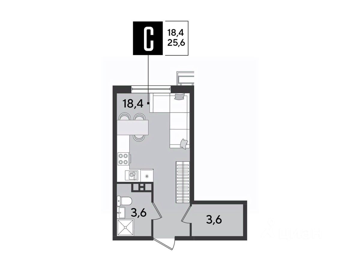Срок сдачи: 2 кв. 2026, общей площадью 25.6 кв.м., на 5 этаже.