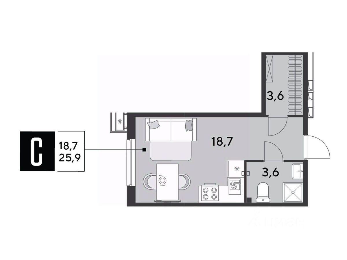 Срок сдачи: 2 кв. 2026, общей площадью 25.9 кв.м., на 2 этаже.