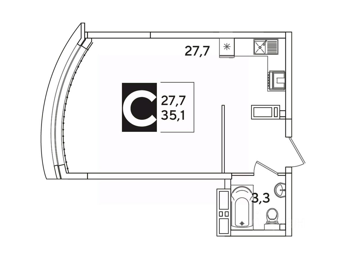 Общая площадь35,1 м²