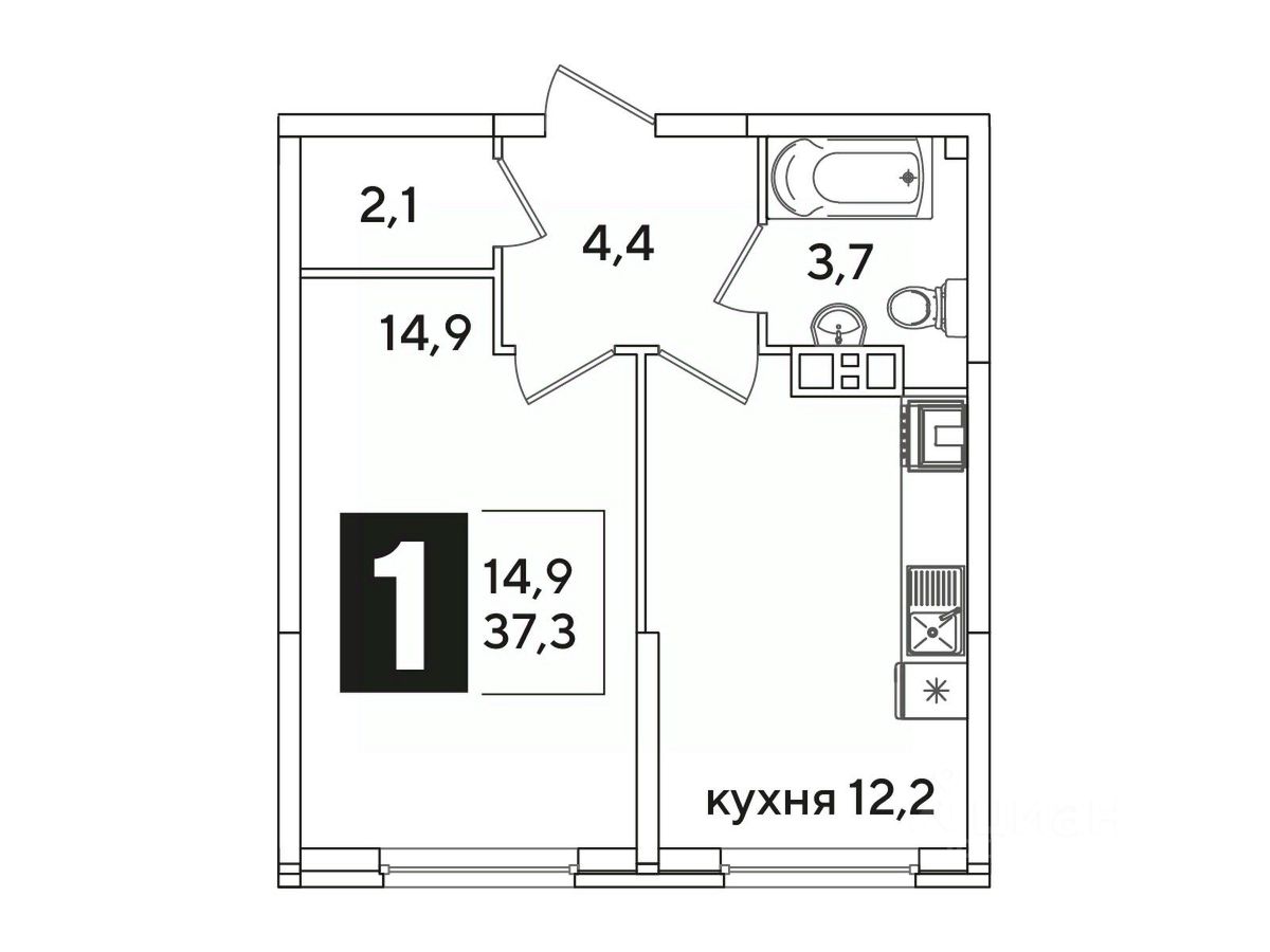 Жилая площадь14,9 м²