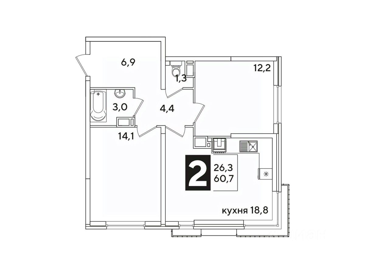 Жилая площадь26,3 м²