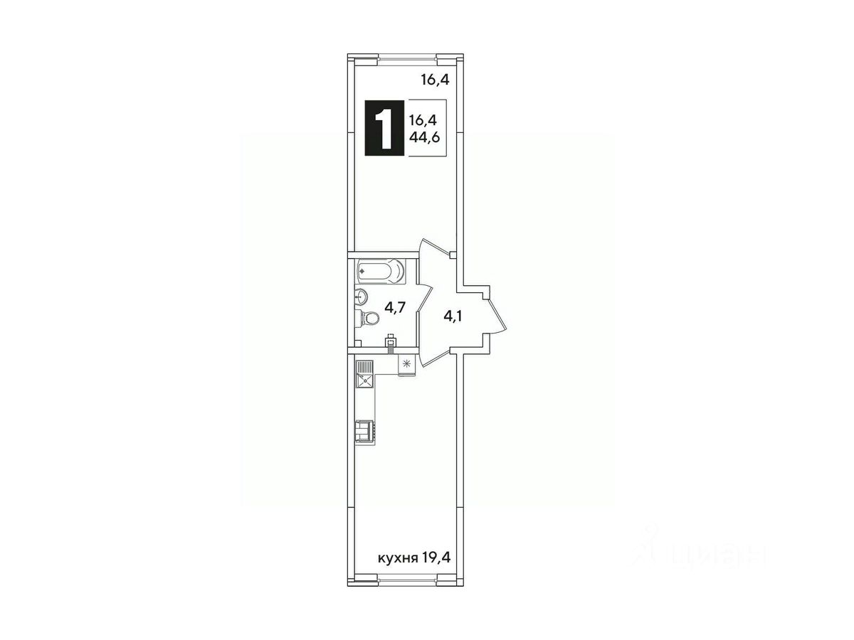 Жилая площадь16,4 м²