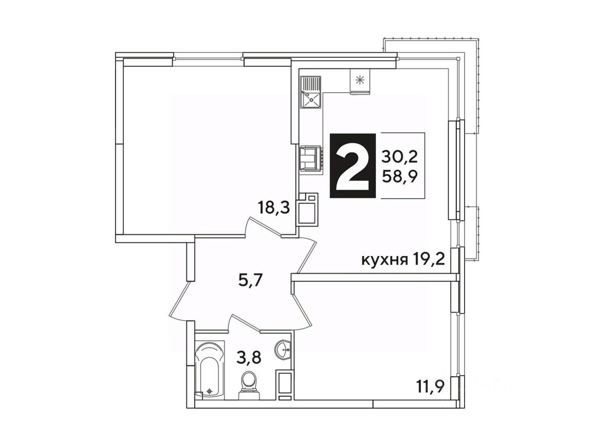 Общая площадь58,9 м²