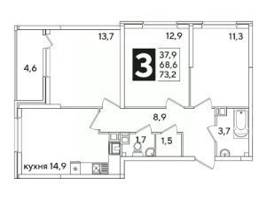 Площадь кухни14,9 м²