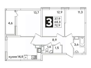 Общая площадь72,9 м²