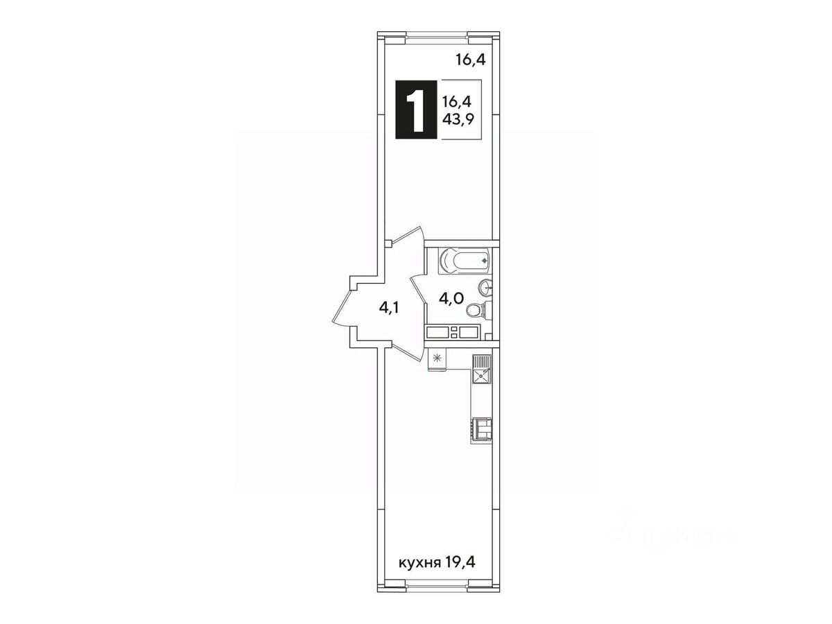 Общая площадь43,9 м²