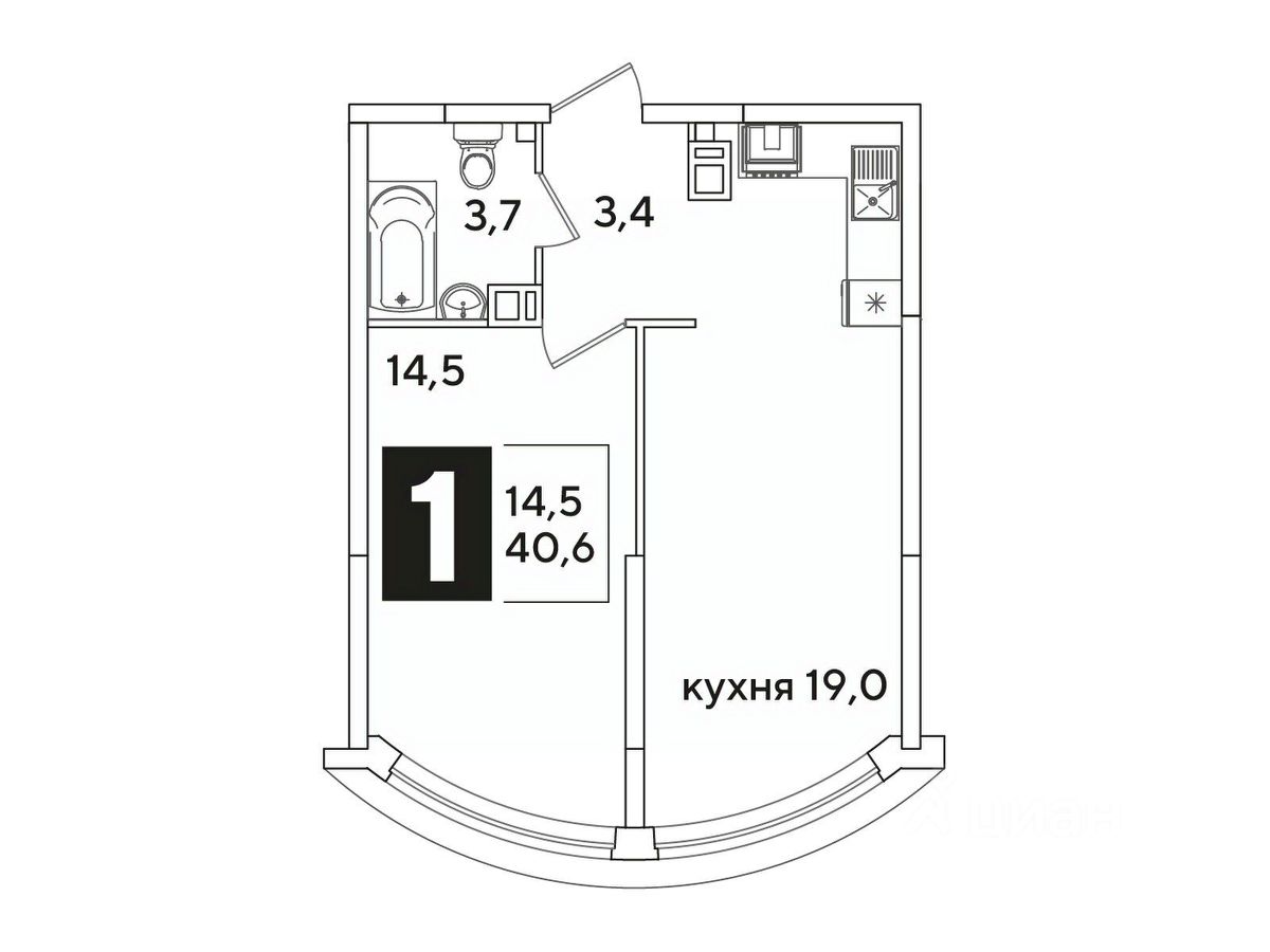 Общая площадь40,6 м²