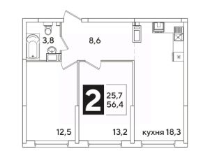 Общая площадь56,4 м²