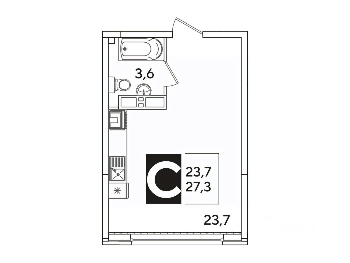 Общая площадь27,3 м²