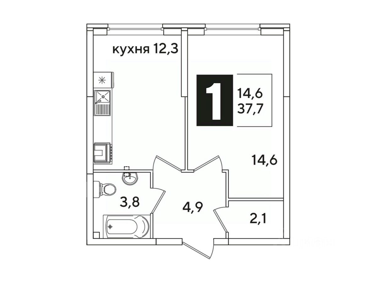 Площадь кухни12,3 м²