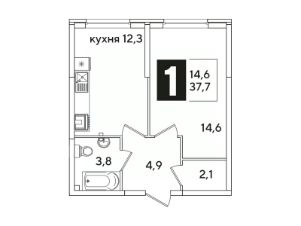 Общая площадь37,7 м²