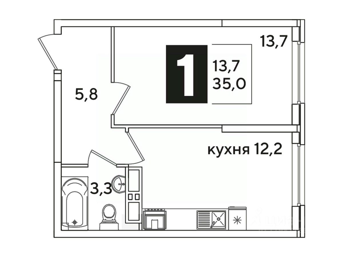 Общая площадь35 м²