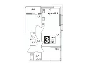 Общая площадь73,1 м²