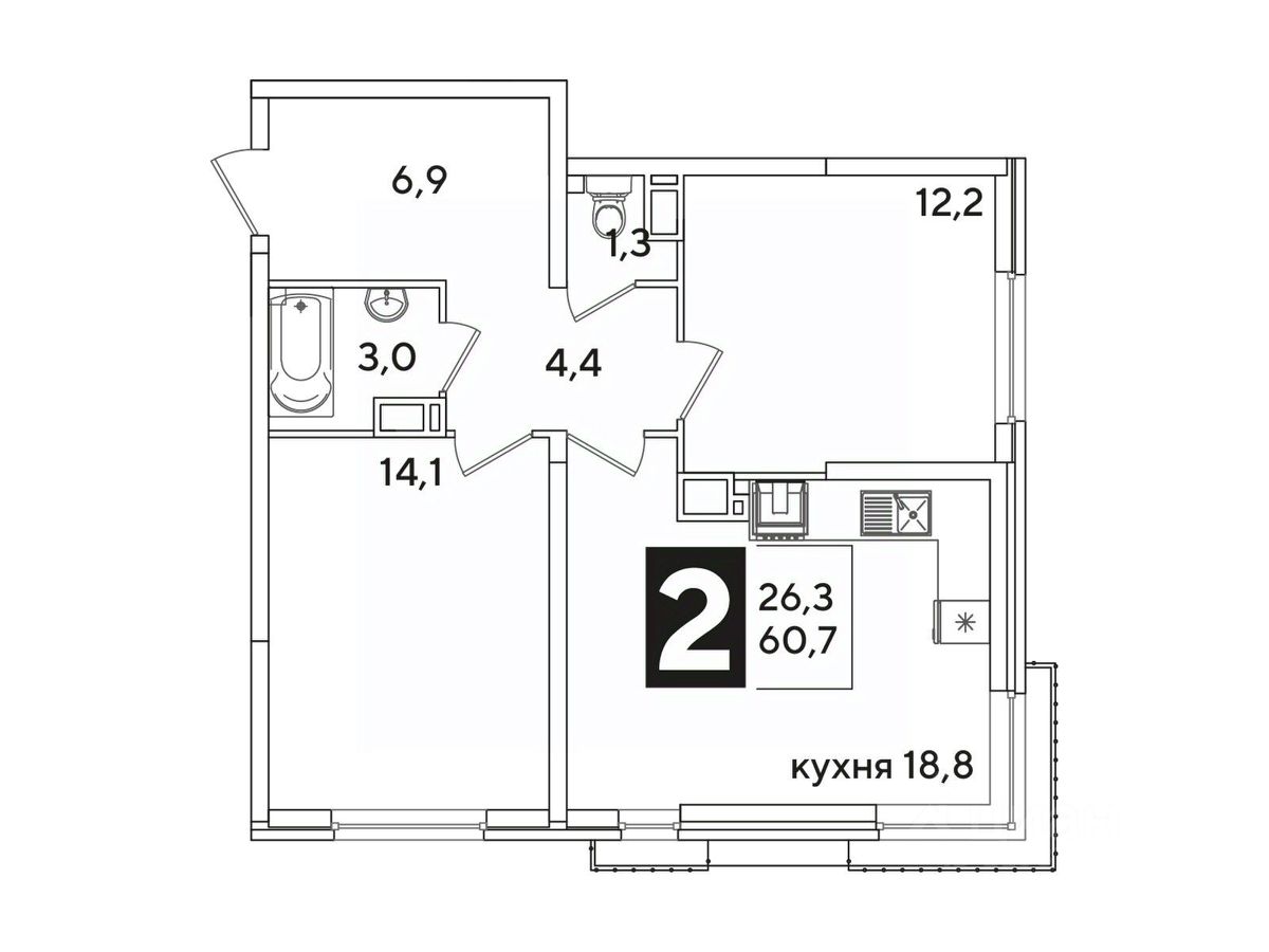 Жилая площадь26,3 м²