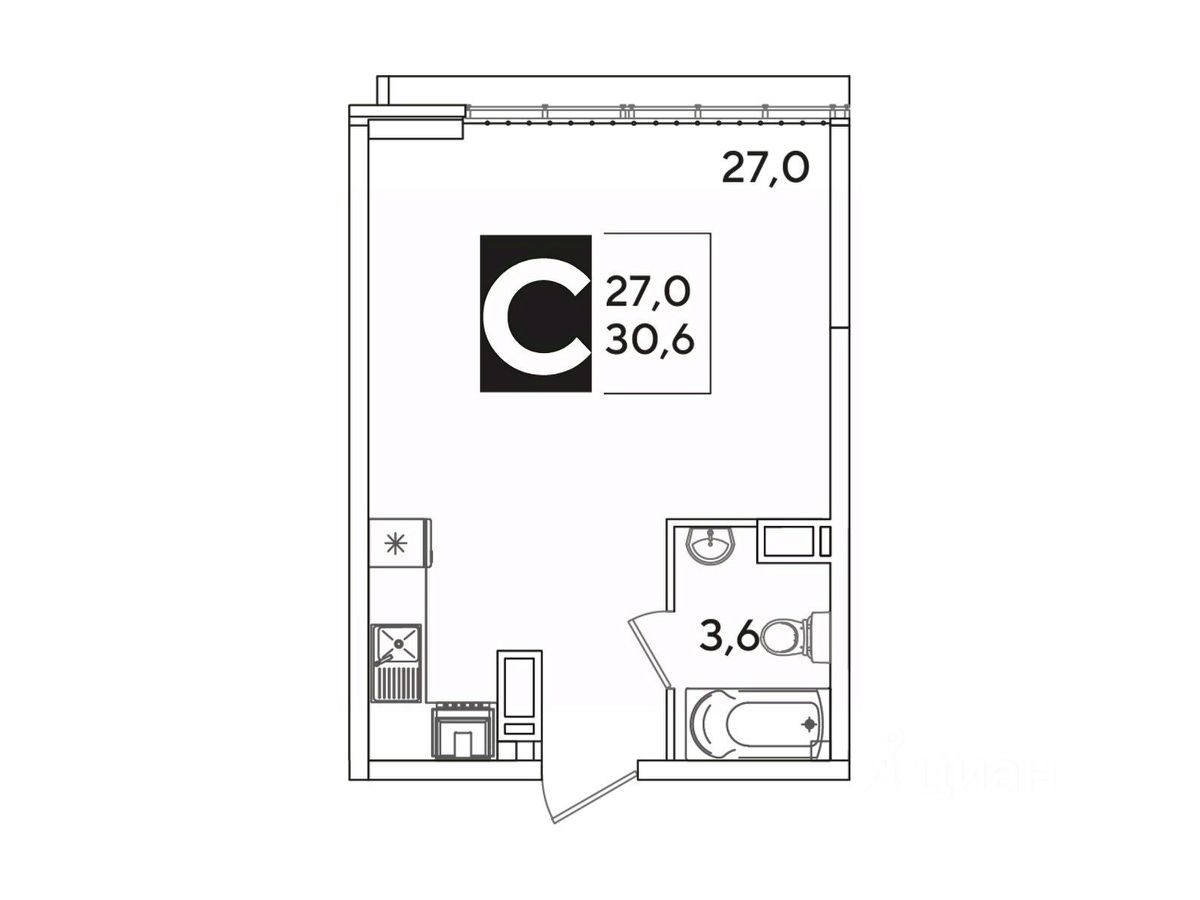 Общая площадь30,6 м²
