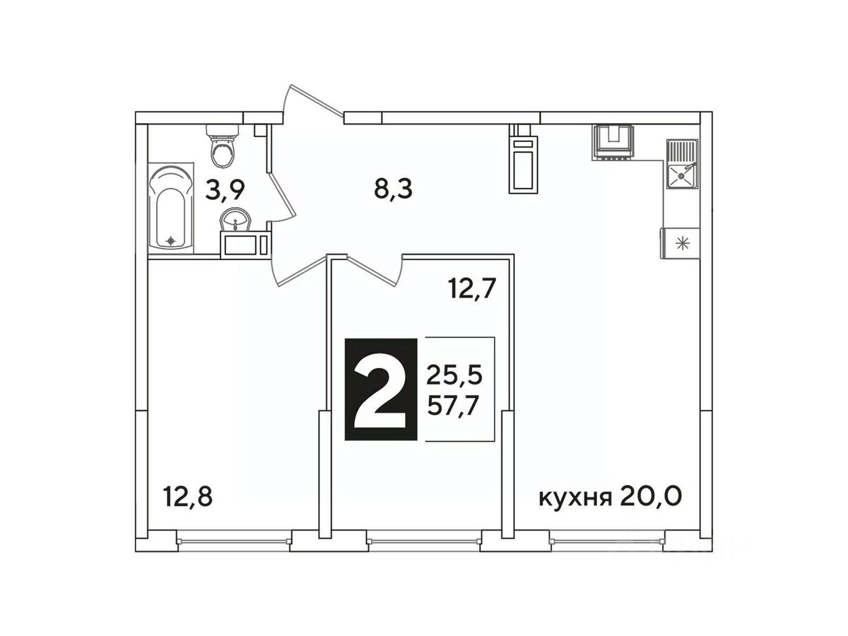 Общая площадь57,7 м²