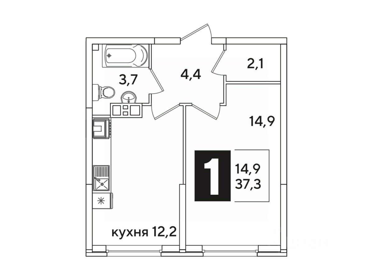 Общая площадь37,3 м²