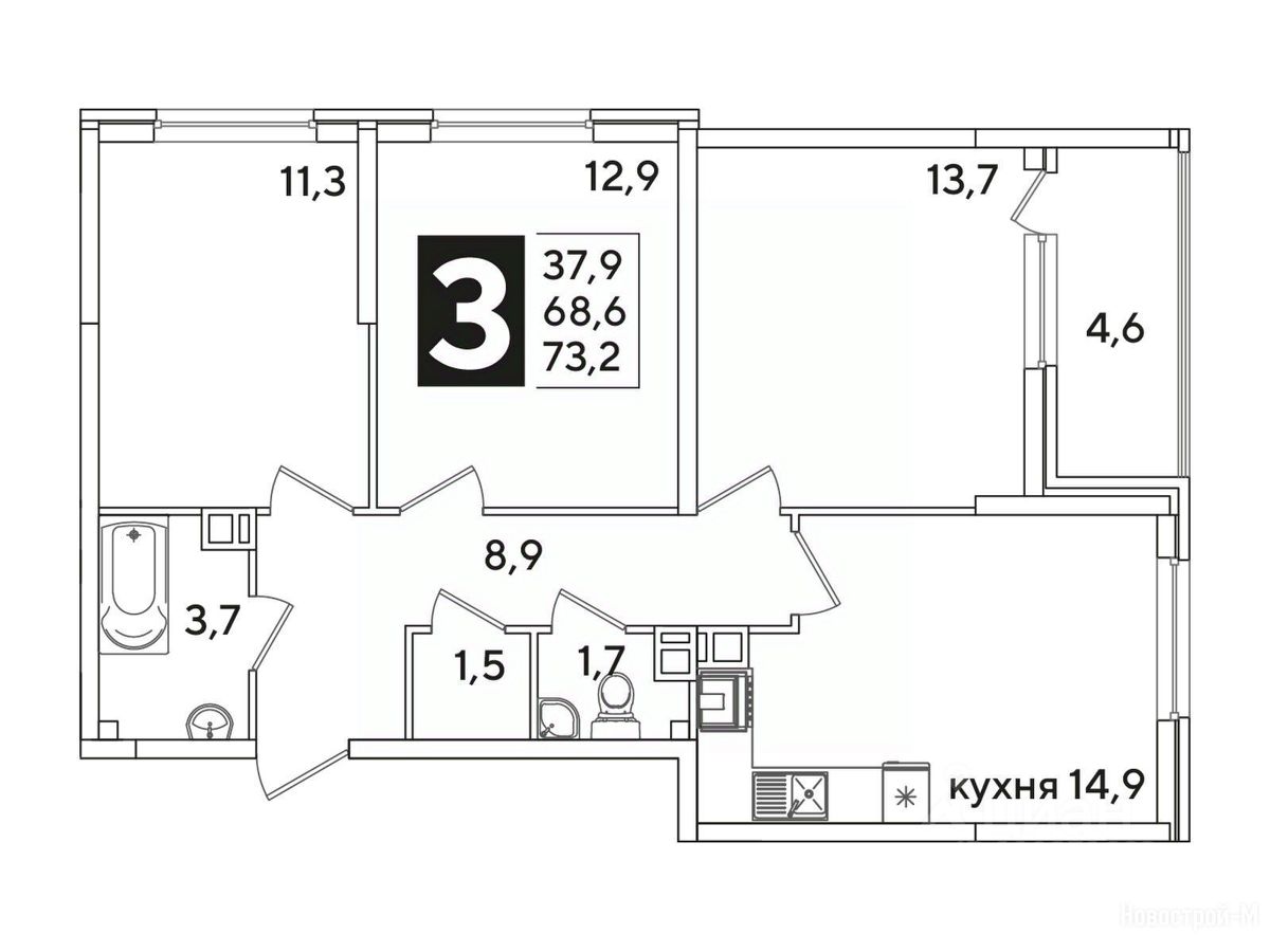 Общая площадь73,2 м²