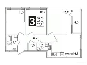 Площадь кухни14,9 м²