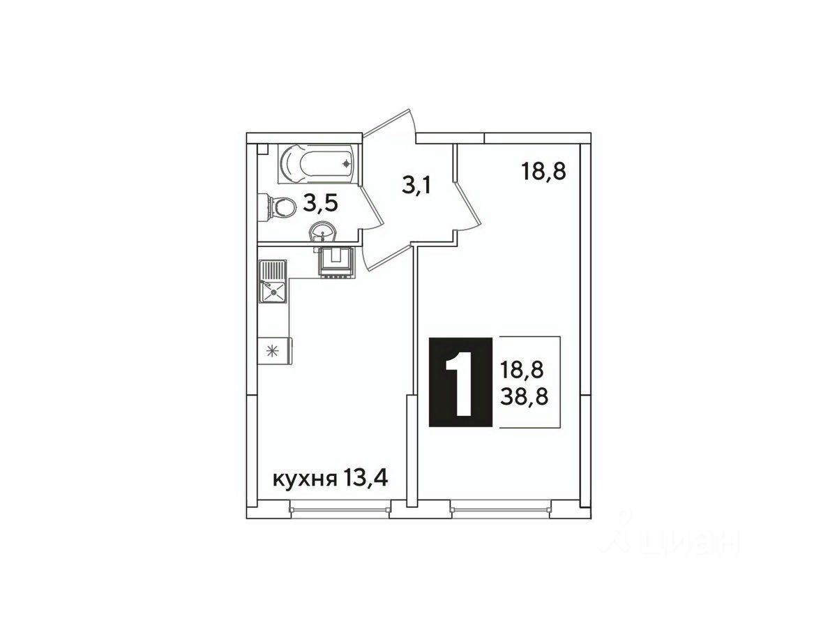 Общая площадь38,8 м²