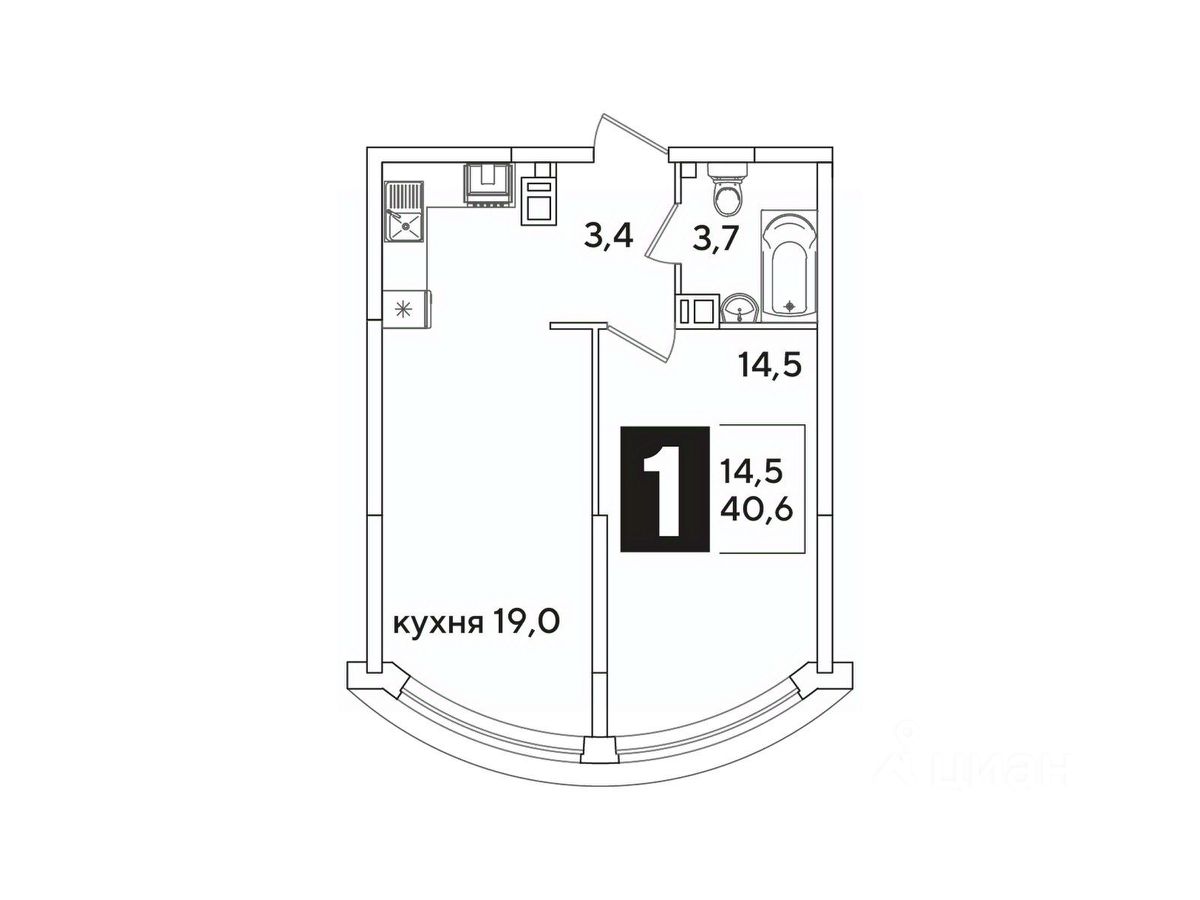 Общая площадь40,6 м²