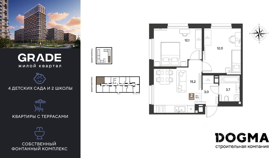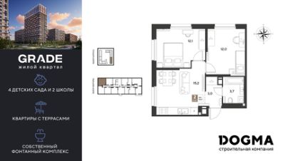 В продаже 2-комнатная квартира от застройщика! ЖК GRADE г. Краснодар, Литер 15