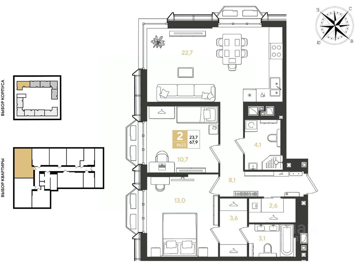 Площадь: 67.90 кв . м