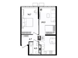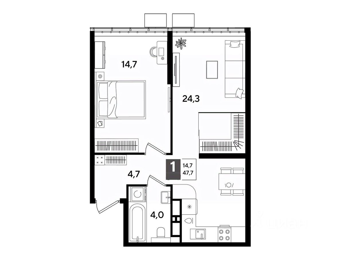 В продаже 1-комнатная квартира от застройщика! Мкр. "DOGMA PARK" г. Краснодар, Литер 32 Срок сдачи: 3 кв. 2027, общей площадью 47.7 кв.м., на 12 этаже.