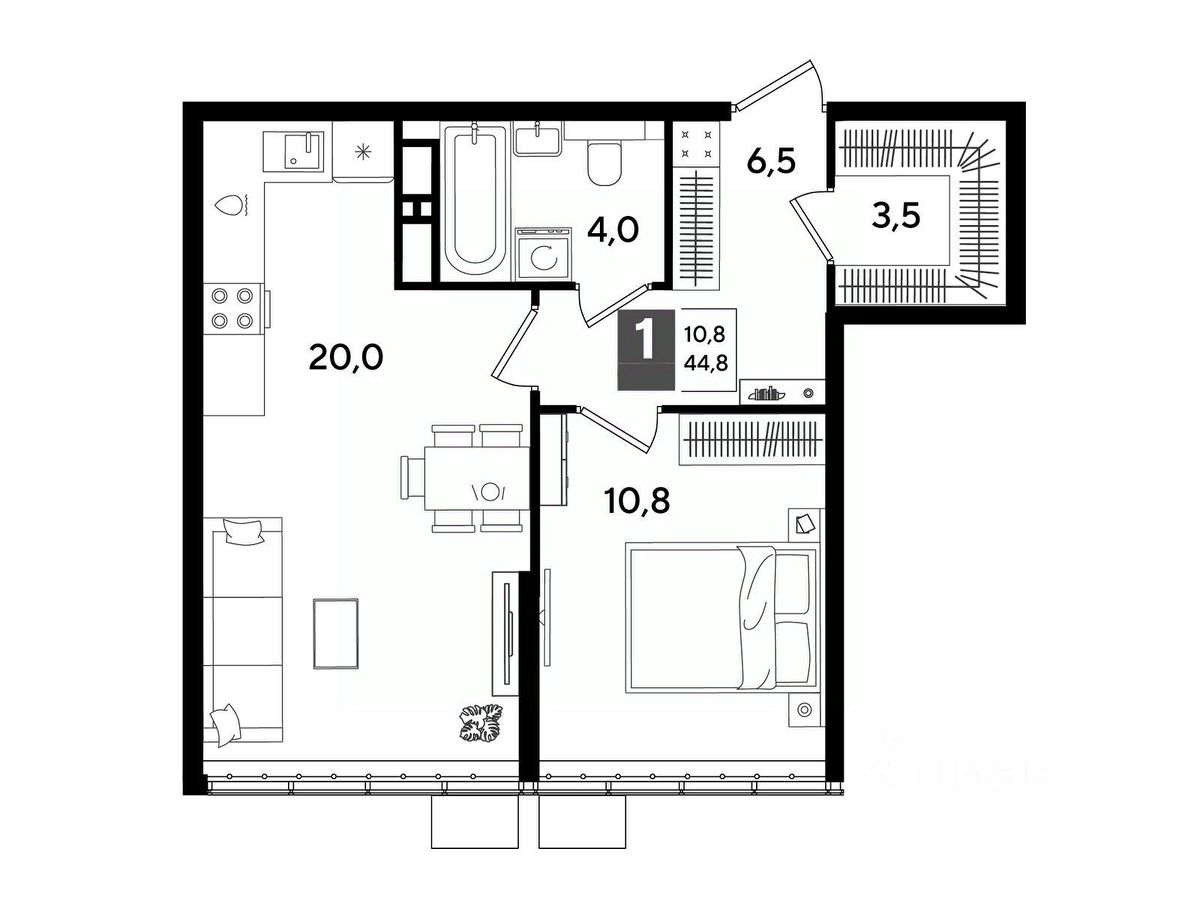 В продаже 1-комнатная квартира от застройщика! Мкр. "DOGMA PARK" г. Краснодар, Литер 32 Срок сдачи: 3 кв. 2027, общей площадью 44.8 кв.м., на 12 этаже.