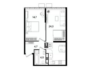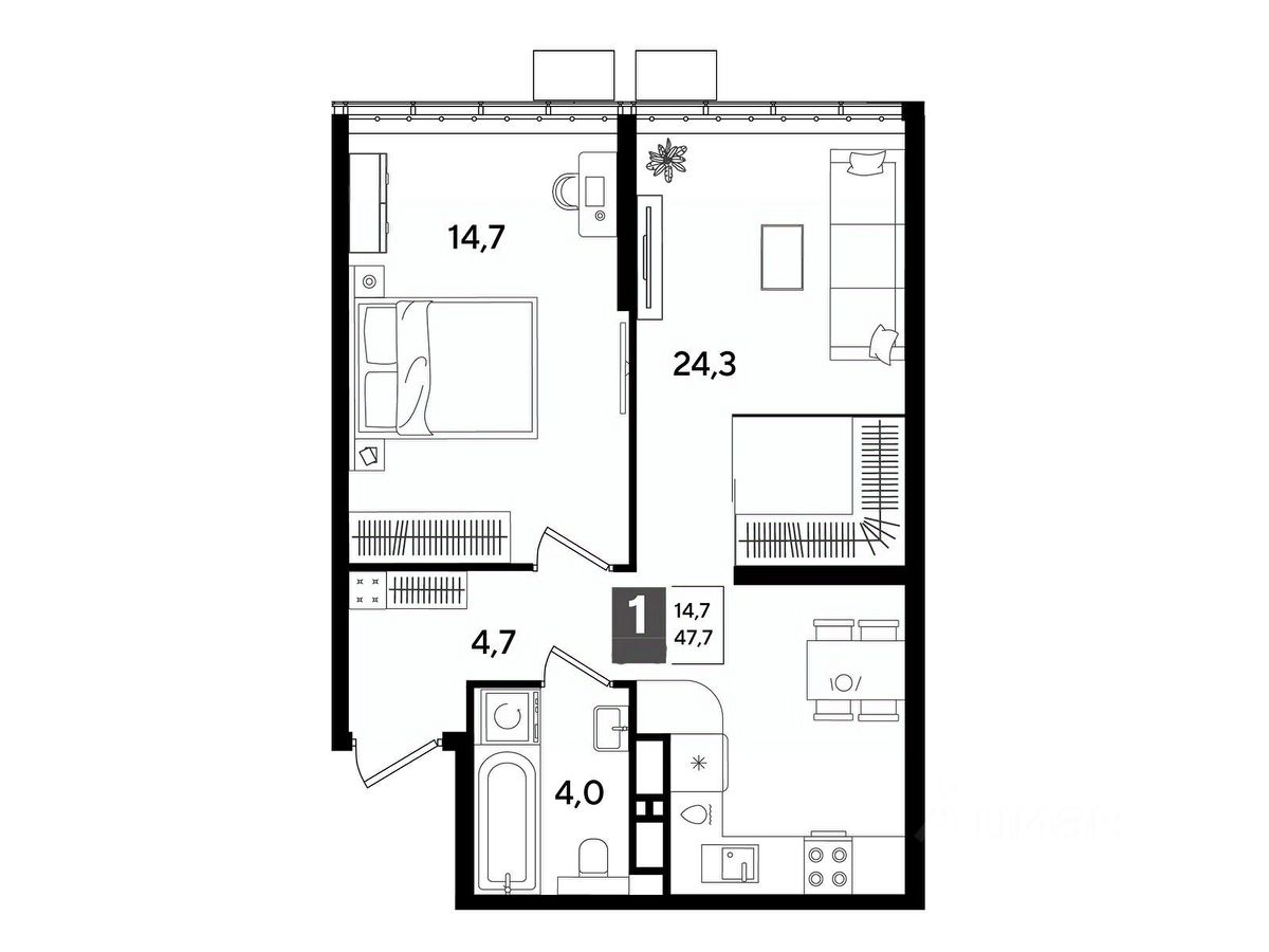В продаже 1-комнатная квартира от застройщика! Мкр. "DOGMA PARK" г. Краснодар, Литер 32 Срок сдачи: 3 кв. 2027, общей площадью 47.7 кв.м., на 14 этаже.