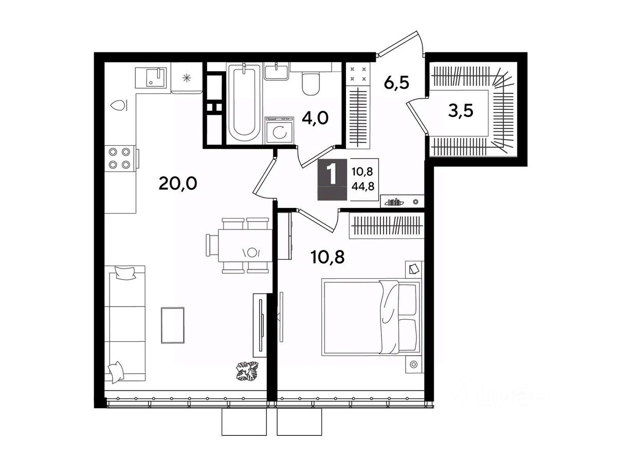 В продаже 1-комнатная квартира от застройщика! Мкр. "DOGMA PARK" г. Краснодар, Литер 32 Срок сдачи: 3 кв. 2027, общей площадью 44.8 кв.м., на 14 этаже.