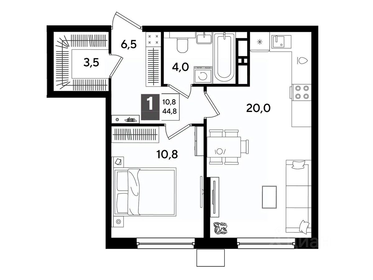 В продаже 1-комнатная квартира от застройщика! Мкр. "DOGMA PARK" г. Краснодар, Литер 32 Срок сдачи: 3 кв. 2027, общей площадью 44.8 кв.м., на 16 этаже.