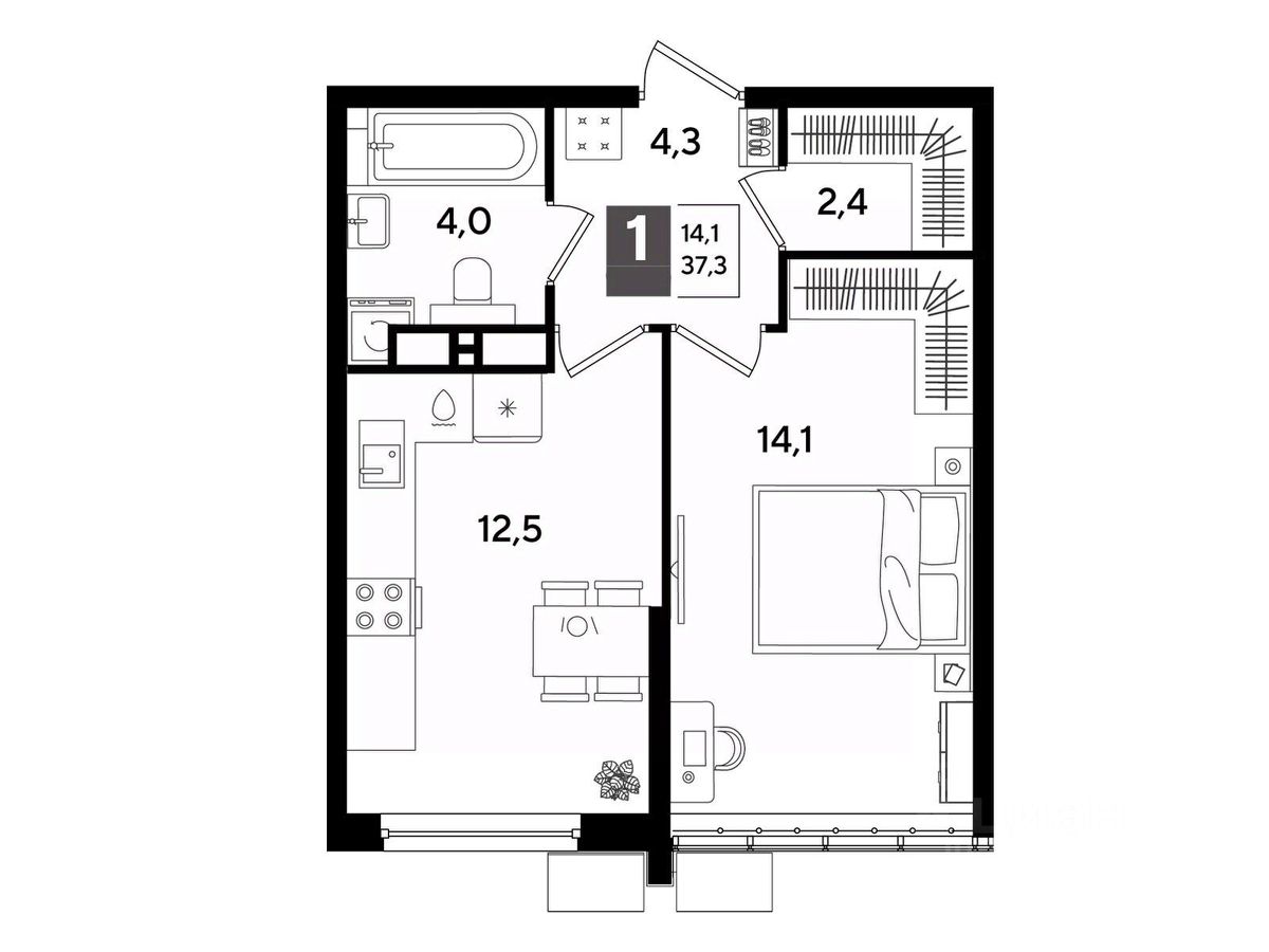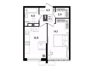 В продаже 1-комнатная квартира от застройщика! Мкр. "DOGMA PARK" г. Краснодар, Литер 32 Срок сдачи: 3 кв. 2027, общей площадью 37.3 кв.м., на 14 этаже.