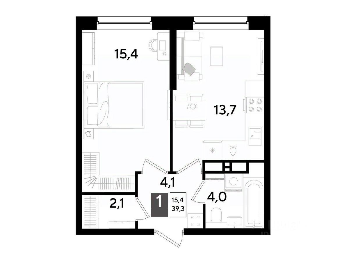 В продаже 1-комнатная квартира от застройщика! Мкр. "DOGMA PARK" г. Краснодар, Литер 31 Срок сдачи: 3 кв. 2027, общей площадью 39.3 кв.м., на 12 этаже.