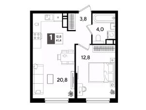В продаже 1-комнатная квартира от застройщика! Мкр. "DOGMA PARK" г. Краснодар, Литер 31 Срок сдачи: 3 кв. 2027, общей площадью 41.4 кв.м., на 14 этаже.