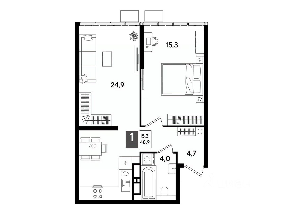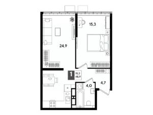В продаже 1-комнатная квартира от застройщика! Мкр. "DOGMA PARK" г. Краснодар, Литер 18 Срок сдачи: 4 кв. 2027, общей площадью 48.9 кв.м., на 16 этаже.