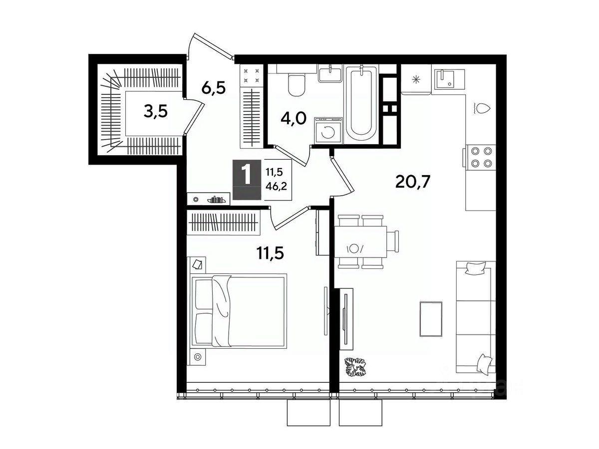 В продаже 1-комнатная квартира от застройщика! Мкр. "DOGMA PARK" г. Краснодар, Литер 18 Срок сдачи: 4 кв. 2027, общей площадью 46.2 кв.м., на 16 этаже.