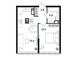 В продаже 1-комнатная квартира от застройщика! Мкр. "DOGMA PARK" г. Краснодар, Литер 18 Срок сдачи: 4 кв. 2027, общей площадью 40.6 кв.м., на 16 этаже.