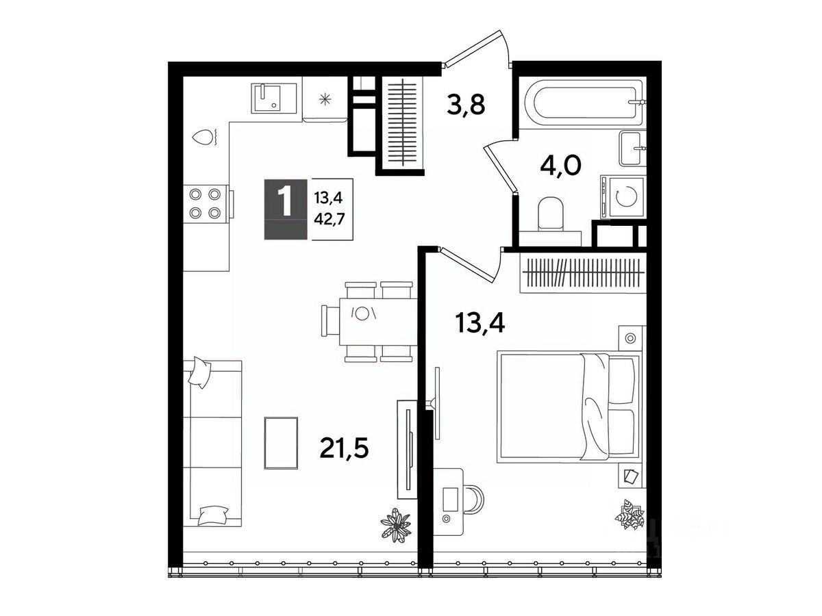 В продаже 1-комнатная квартира от застройщика! Мкр. "DOGMA PARK" г. Краснодар, Литер 18 Срок сдачи: 4 кв. 2027, общей площадью 42.7 кв.м., на 16 этаже.