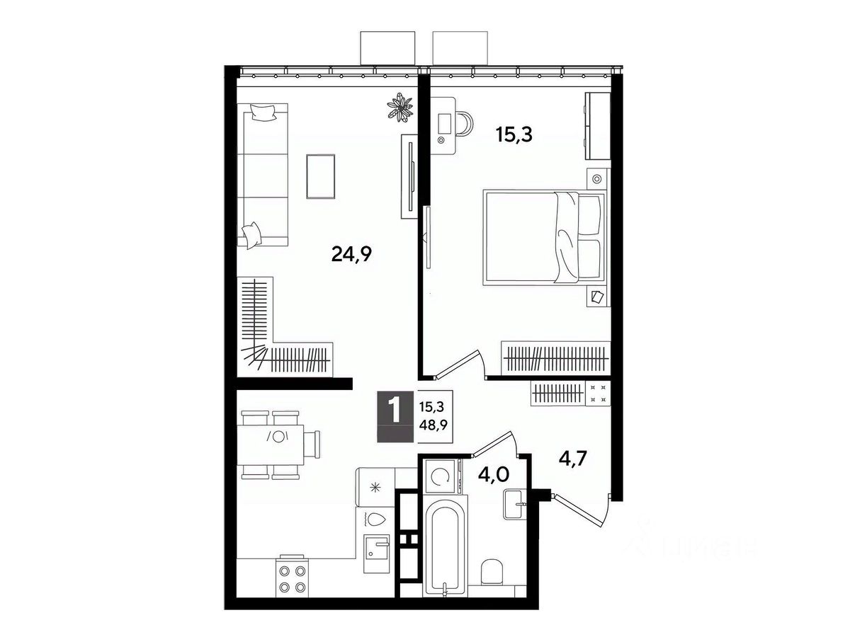 В продаже 1-комнатная квартира от застройщика! Мкр. "DOGMA PARK" г. Краснодар, Литер 16 Срок сдачи: 4 кв. 2027, общей площадью 48.9 кв.м., на 16 этаже.