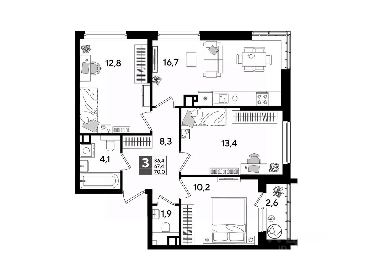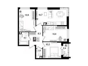 В продаже 3-комнатная квартира от застройщика! Мкр. "DOGMA PARK" г. Краснодар, Литер 24 Срок сдачи: 4 кв. 2027, общей площадью 70 кв.м., на 7 этаже.