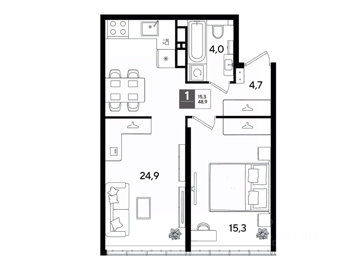 В продаже 1-комнатная квартира от застройщика! Мкр. "DOGMA PARK" г. Краснодар, Литер 24 Срок сдачи: 4 кв. 2027, общей площадью 48.9 кв.м., на 16 этаже.