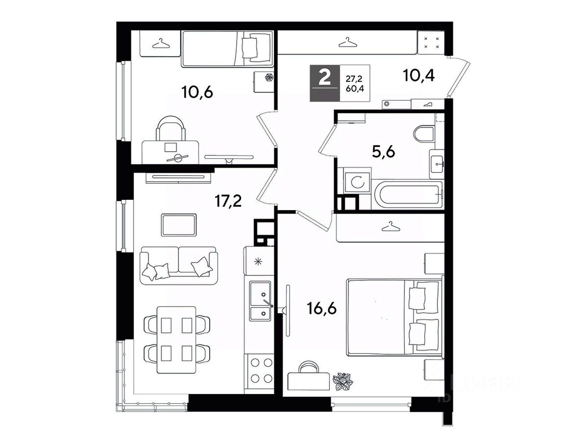 В продаже 2-комнатная квартира от застройщика! Мкр. "DOGMA PARK" г. Краснодар, Литер 24 Срок сдачи: 4 кв. 2027, общей площадью 60.4 кв.м., на 6 этаже.